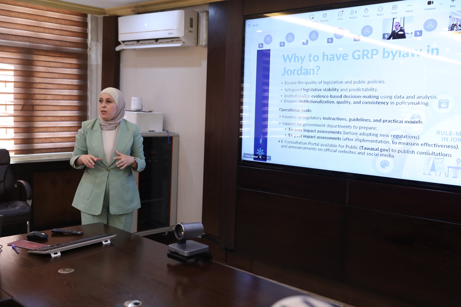 مندوبة عن رئيس الوزراء، أعلنت وزيرة الدولة لتطوير القطاع العام، المهندسة بدرية البلبيسي، يوم الثلاثاء، خلال فعالية نظمتها وحدة تقييم الأثر في رئاسة الوزراء، بالتعاون مع وزارة التخطيط والتعاون الدولي والوكالة الألمانية للتعاون الدولي (GIZ)، نفاذ نظام تقييم أثر التشريعات والسياسات، كإطار عمل جديد يهدف إلى تحسين عملية إعداد التشريعات والسياسات العامة، وضمان تحقيق الأهداف بكفاءة وفاعلية.